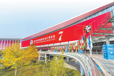 国家会展中心(上海),进博会标识醒目。 |