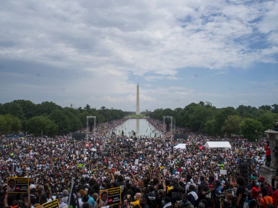 2020年8月28日,人们在美国首都华盛顿林肯纪念堂附近参加反种族歧视和暴力执法示威活动。新华社发(阿兰摄)