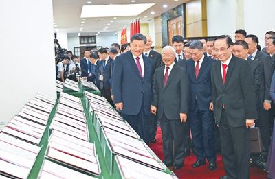 当地时间12月12日下午,刚刚抵达河内的中共中央总书记、国家主席习近平在越共中央驻地同越共中央总书记阮富仲举行会谈。这是会谈后,两党总书记共同见证双方签署的双边合作文件展示。 |