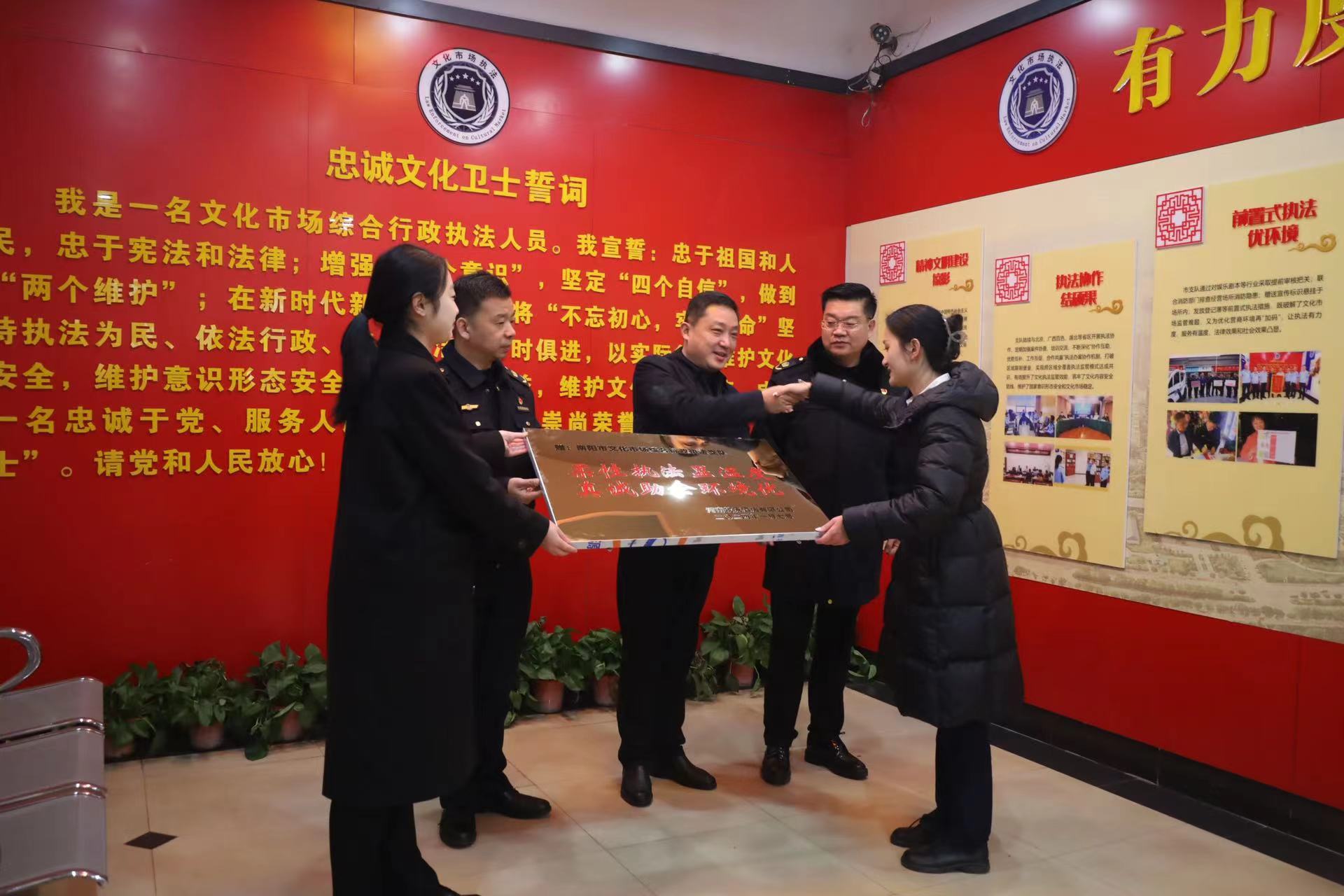 河南日报客户端记者孟向东 李栀子 通讯员 程伟伟 “太感谢了!你们真为企业办实事儿呀!‘忠诚文化卫士’名不虚传!”1月10日,河南牧原酒店有限公司工作人员来到南阳市文化市场综合行政执法支队,对该支队帮助企业解决实际问题的贴心服务表示感谢。