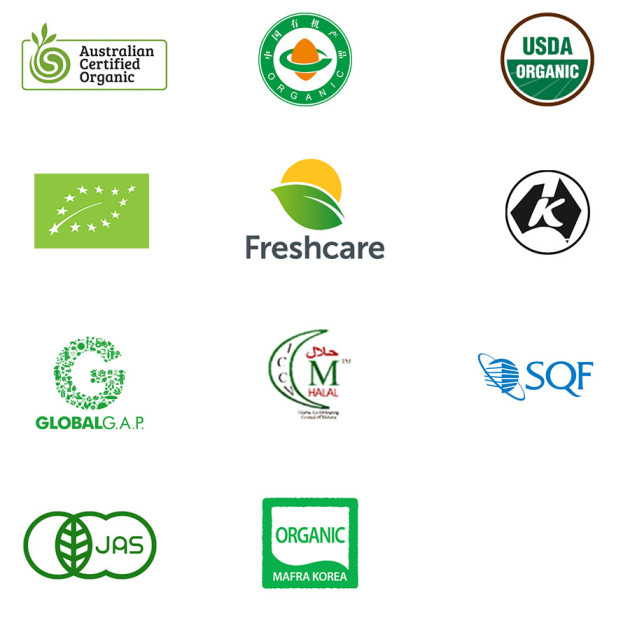 MRO玛汭河在全球共拥有11项质量认证,其中包括澳大利亚ACO有机认证、中国中绿华夏(COFCC)有机认证、欧盟有机认证、美国农业部(USDA)有机认证、全球GAP农场认证、犹太食品认证、Halal食品认证等多重有机认证,一直向消费者提供天然、有机、所有人均可食用的产品。