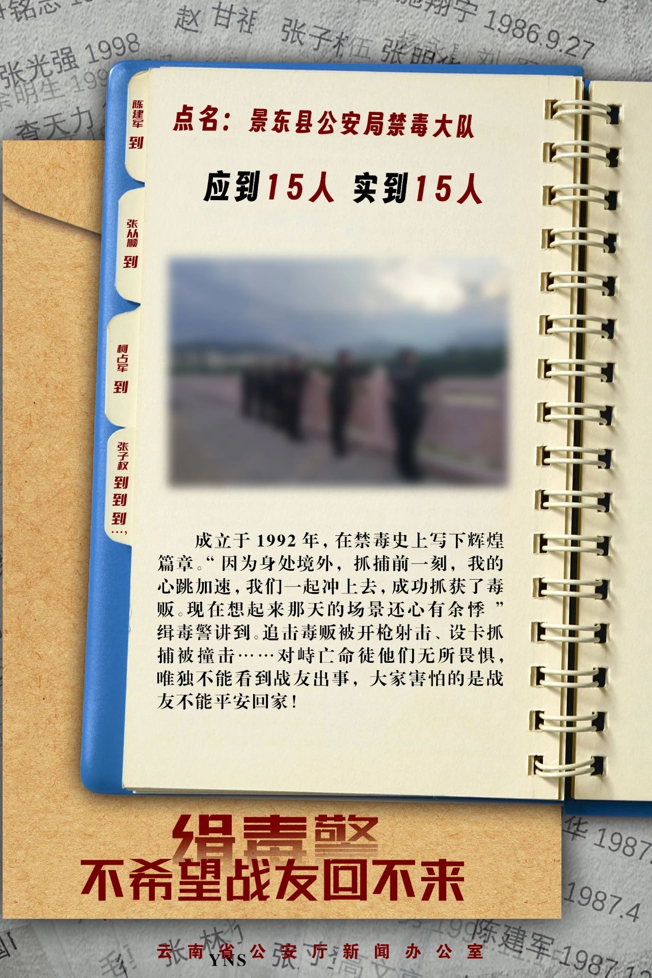 点名:临沧市公安局禁毒支队,应到36人,实到33人……