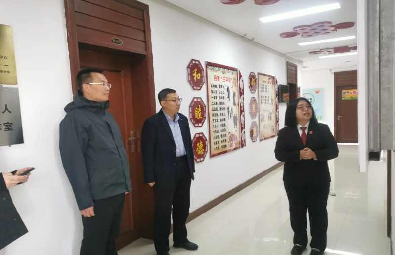 在双阳区人民法院党组成员、副院长王忠旭及审判委员会专职委员黄桂茹的陪同下,长白县人民法院一行首先参观了平湖人民法庭。法庭的“硬件”建设以贴心为民、高效便民为核心,精心布局的整体设计和功能设置给长白县法院带来了诸多启发。随后,一行人前往奢岭人民法庭,双方就“枫桥式人民法庭”的创建工作进行了深入探讨。奢岭法庭重点介绍的“苔花工程”强化了法庭直接参与执行工作的力度,展现了其心系百姓、司法为民的坚定决心。